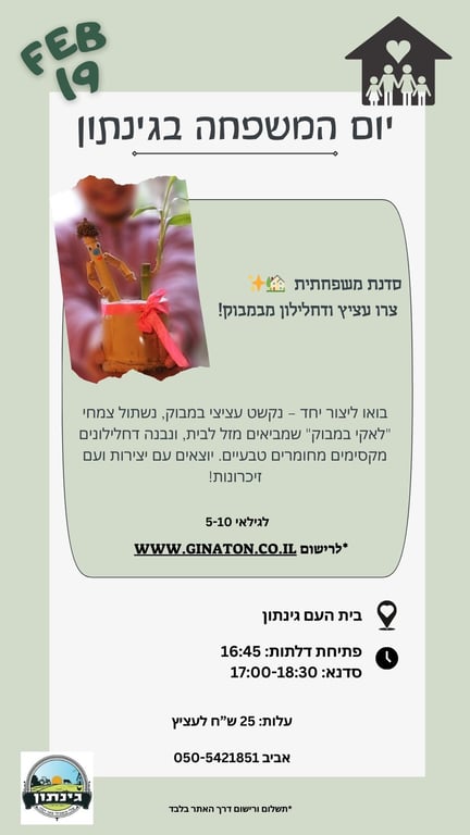 סדנת משפחתית 🏡✨צרו עציץ ודחלילון מבמבוק!בואו ליצור יחד –...