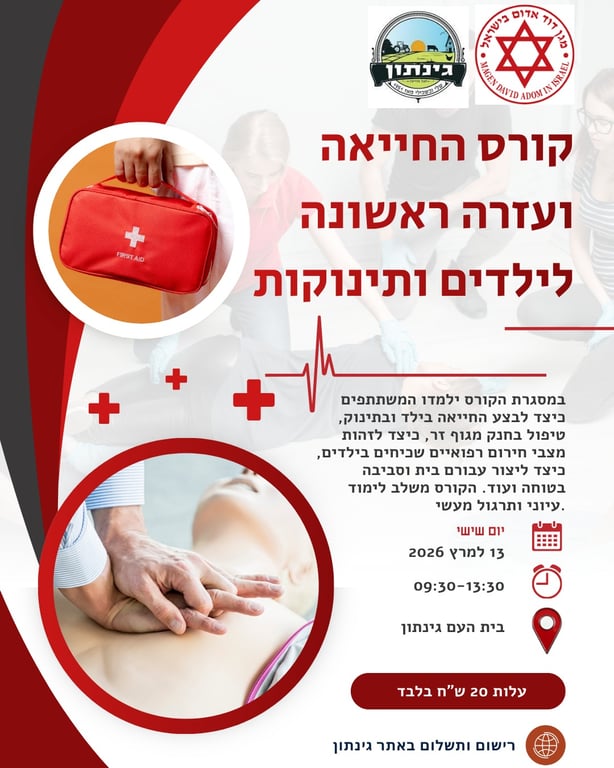 📢 קורס החייאה ועזרה ראשונה לילדים ותינוקותהורים, סבים...