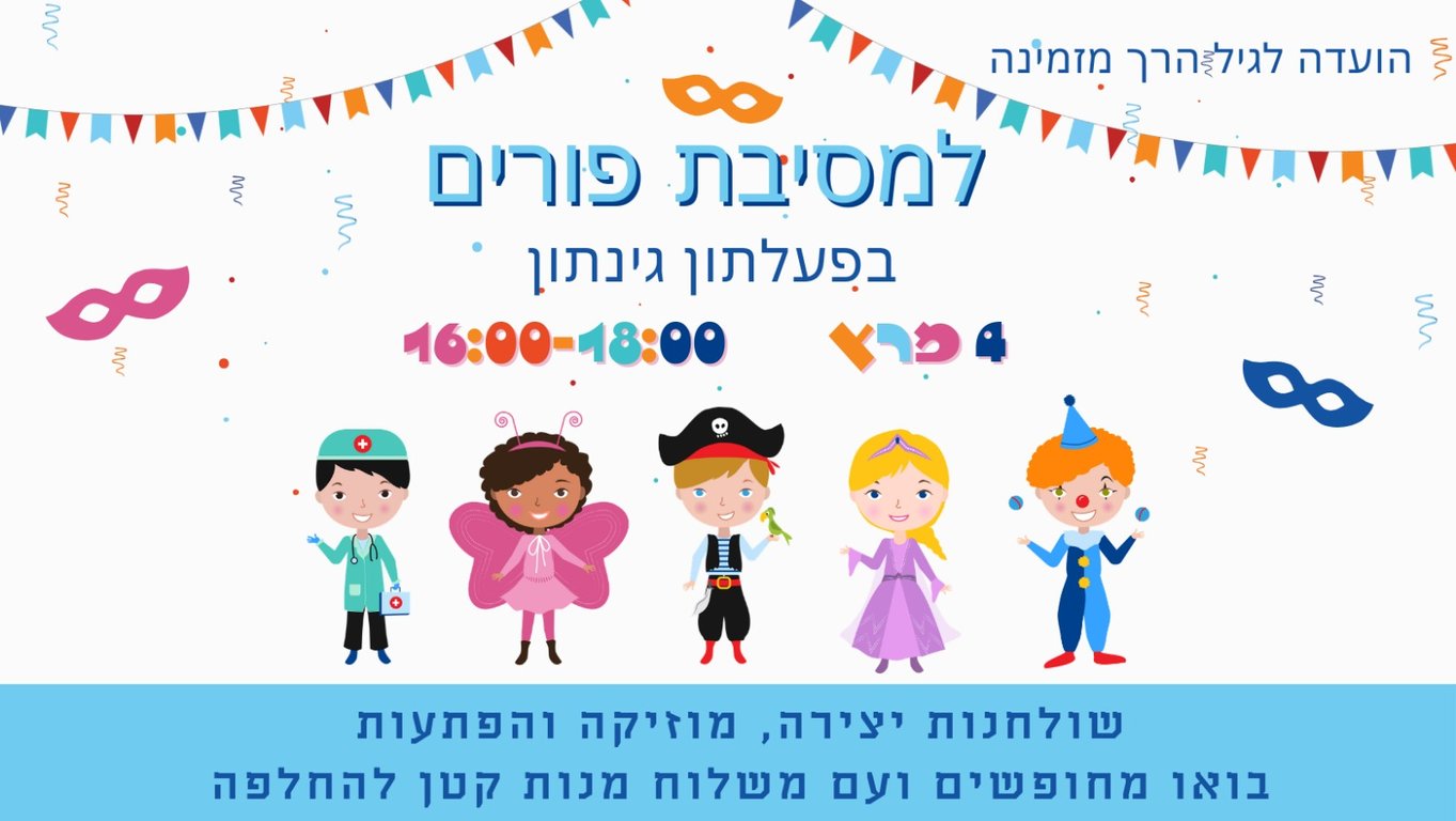 🌸🎭 ועדת הגיל הרך מזמינה אתכם למסיבת פורים שמחה בפעלתון!...